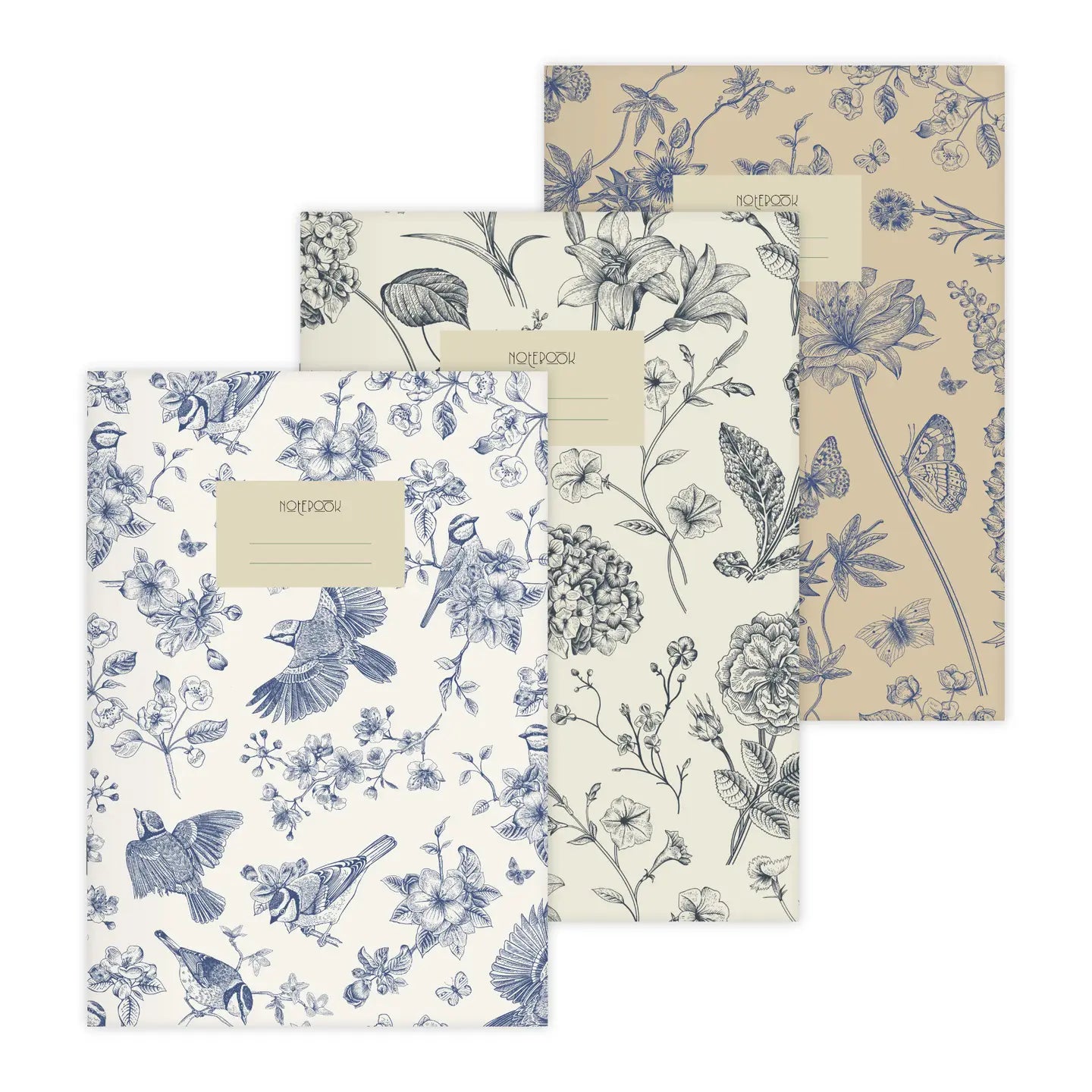 Drie notitieboekjes met natuurpatronen. kenmerken van het product - Formaat DIN A5 - ca. 14,5 x 21 cm - 32 vellen van 80 g/m² (64 pagina's) - draadstiksels