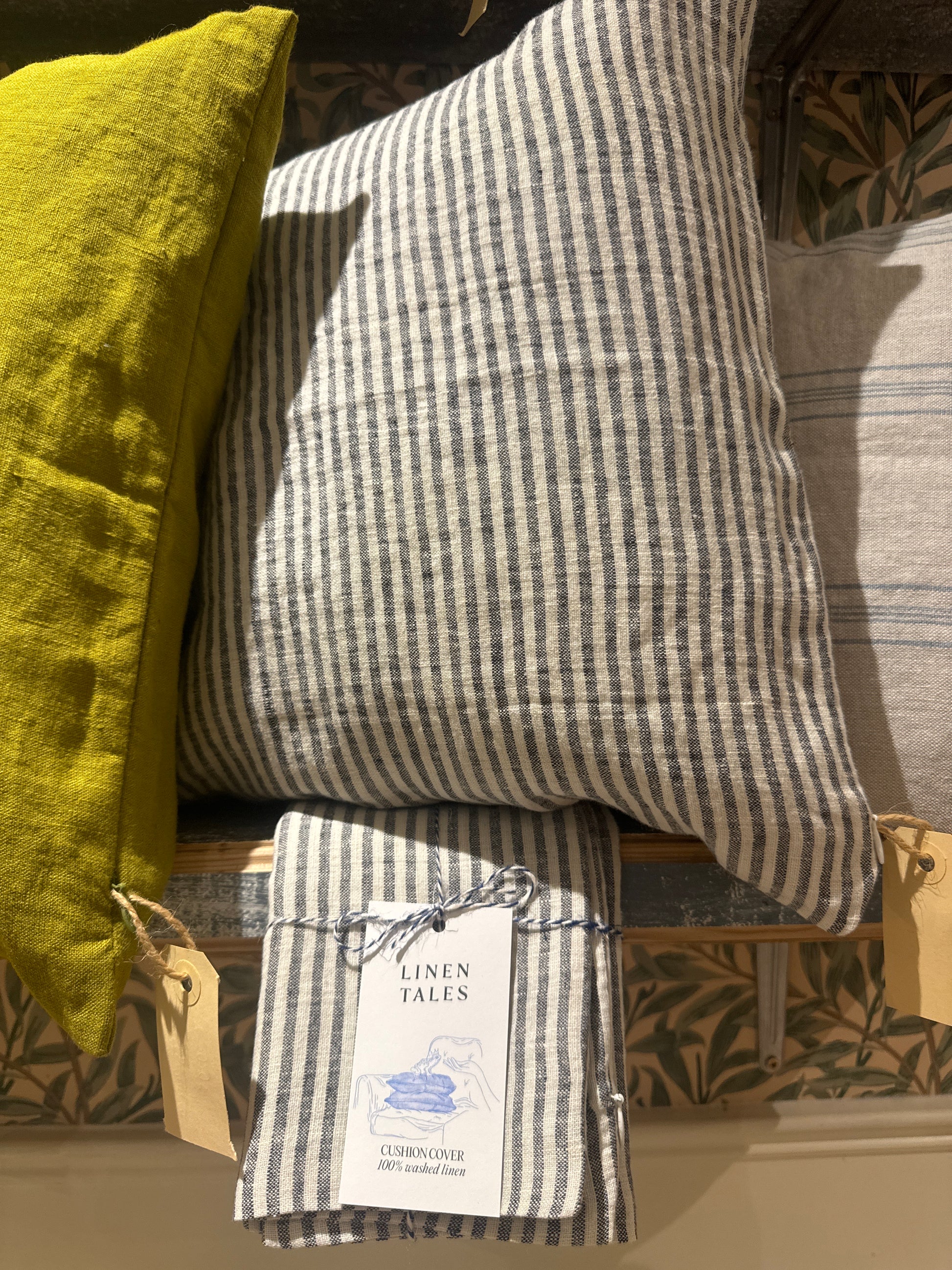 Linnen Tales Grijs-Blauwe gestreepte Kussensloop