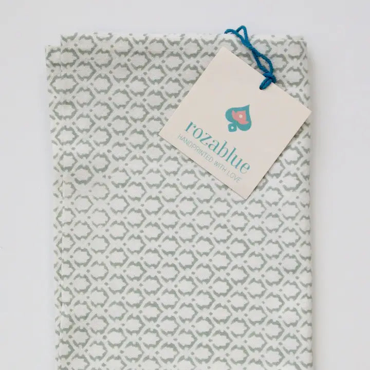 Rozablue handgedrukte keukendoek - lichtgroen - 100% Katoen