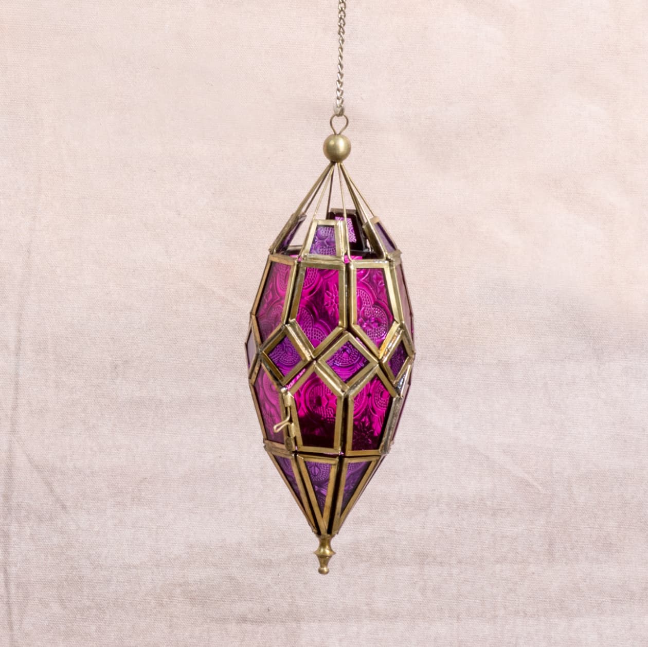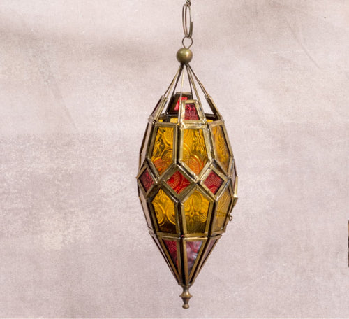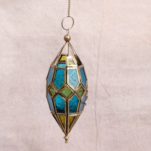 Deze prachtige hanglantaarn in Marokkaanse stijl is met de hand vervaardigd door bekwame ambachtslieden en straalt karakter en vakmanschap uit. De rijke, glanzende kleuren van het glas trekken direct de aandacht en zorgen voor een warme, sfeervolle uitstraling in elke ruimte.