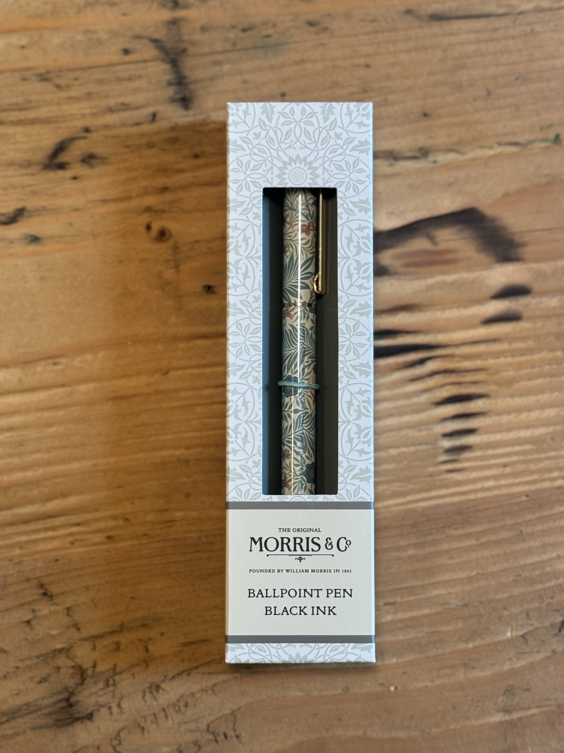 Schrijven wordt een stijlvolle ervaring met deze prachtige balpen van Morris & Co. De pen is voorzien van een klassiek patroon geïnspireerd op de iconische ontwerpen van William Morris, en wordt geleverd in een bijpassend luxe doosje – perfect als cadeau of om jezelf mee te verwennen.