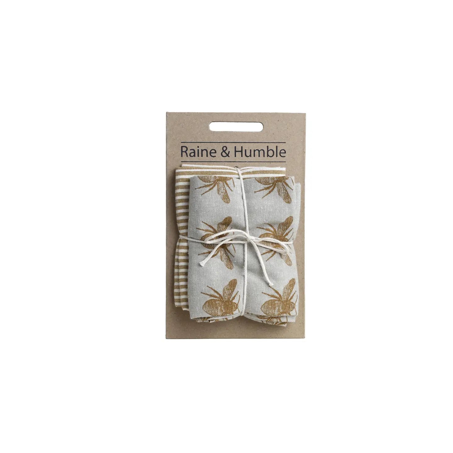 Set van twee theedoeken in mosterdgeel. De ene heeft het honingbijpatroon en de andere onze Abby Bee-streep. Gepresenteerd op een idee van recyclebaar karton om in de winkel tentoon te stellen en cadeau te geven. Een geweldig cadeau voor een gastvrouw. Het merk Raine & Humble staat bekend om hun aandacht voor detail en toewijding aan duurzaamheid. Deze theedoeken zijn geen uitzondering. De geschenkverpakking is gemaakt van gerecycled karton, waardoor het een milieuvriendelijke keuze is. Bovendien is het Indiase katoen dat wordt gebruikt om de handdoeken te maken van duurzame oorsprong, zodat u een goed gevoel kunt hebben bij uw aankoop, wetende dat het zowel van hoge kwaliteit als milieuvriendelijk is.
