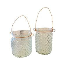 Breng sfeer in huis met deze leuke theelichthouders voor in de boom of aan een haakje. Door het reliëf in het glas ontstaat een romantisch licht.
