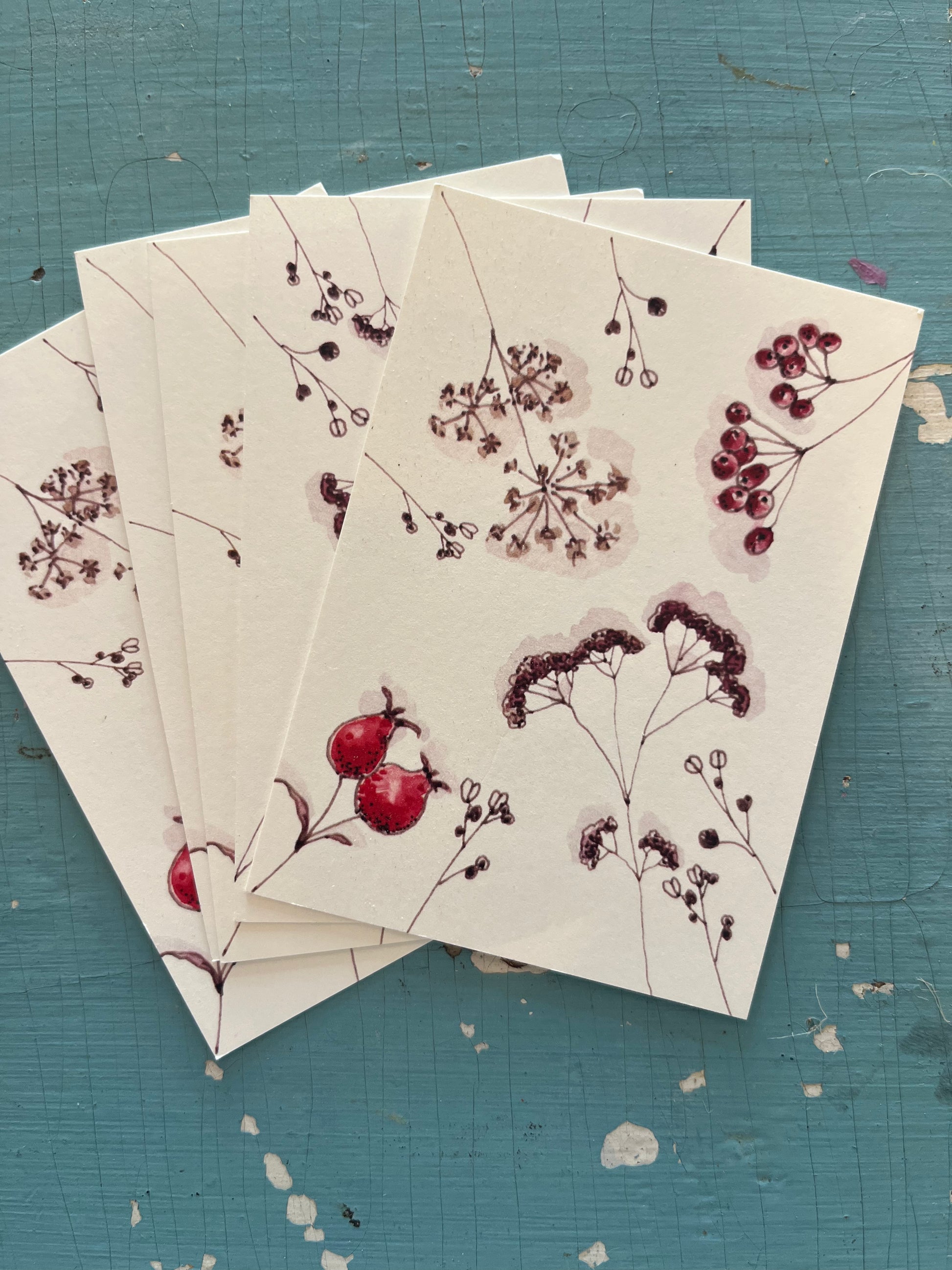Geïllustreerde wenskaart, kleine platte kaart, cadeaulabel met originele aquarel schilderij print.